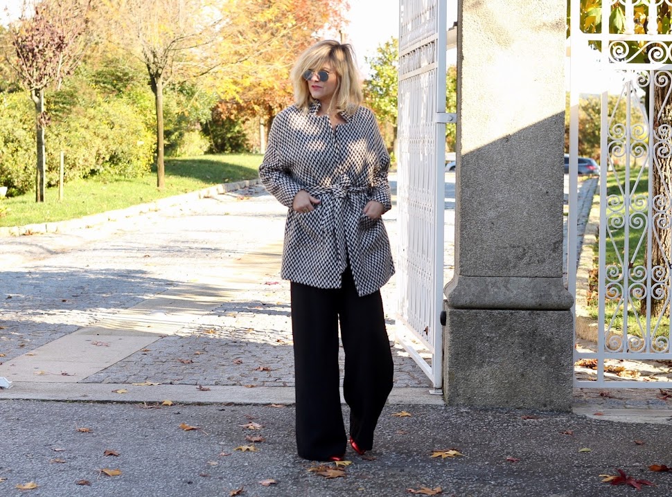 adoro o contraste do casaco com as calças, além de que criam uma silhueta fantástica :)